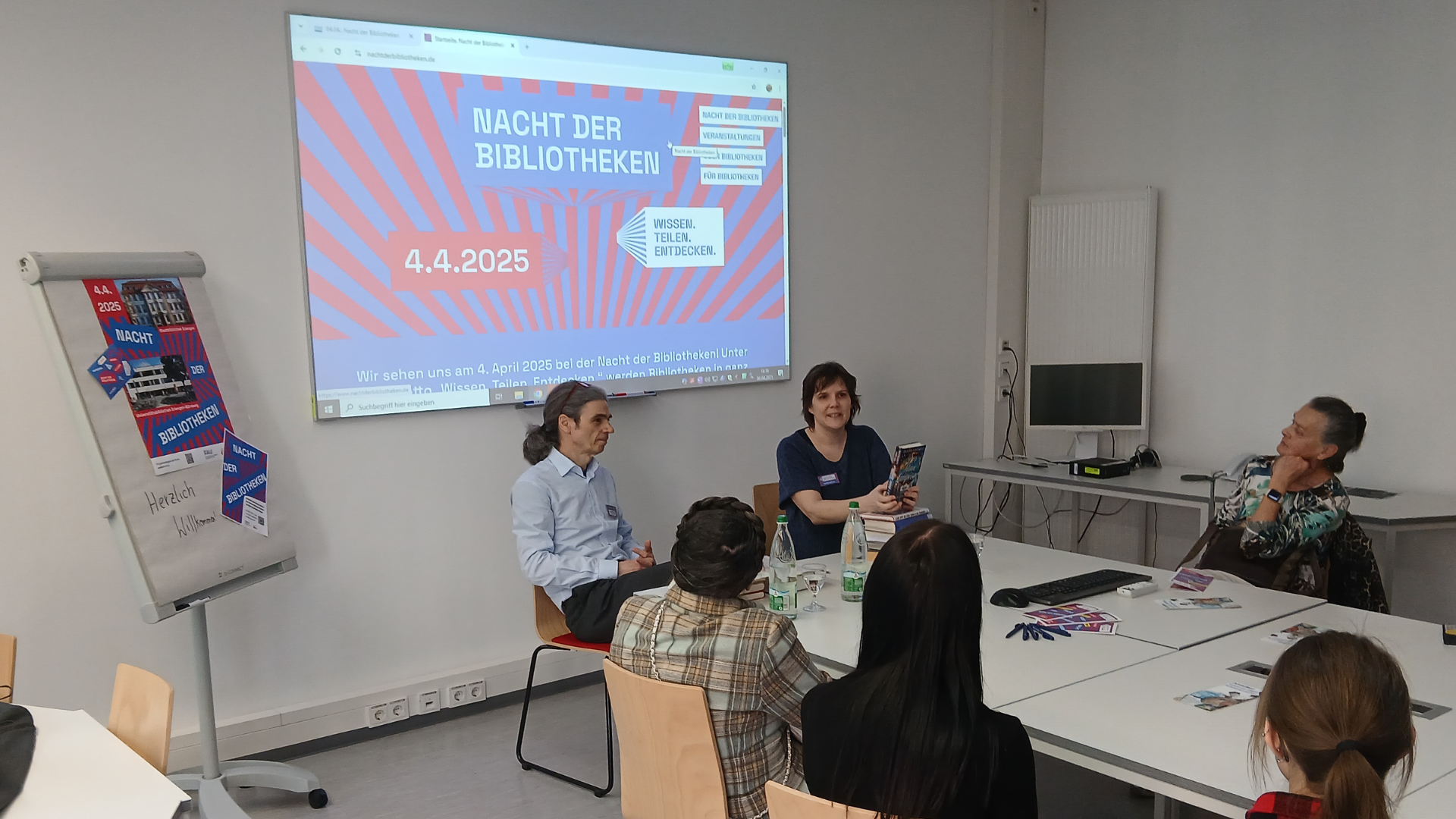 Am 04.04.2025 fand die Nacht der Bibliotheken zum ersten Mal bundesweit statt. Unter dem Motto „Wissen. Teilen. Entdecken.“ öffneten über 1.800 große und kleine Stadtbibliotheken, Inselbibliotheken, Universitätsbibliotheken, Bücherbusse, Schulbibliotheken, Patientenbibliotheken, Spezialbibliotheken und eine Gefangenenbibliothek ihre Türen und luden alle Bürger*innen ein, die vielfältigen Angebote in Bibliotheken zu entdecken. Insgesamt fanden rund 4.300 Veranstaltungen statt, die von mehr als 250.000 Menschen besucht wurden. Die Universitätsbibliothek war gemeinsam mit der Stadtbibliothek Erlangen dabei.
