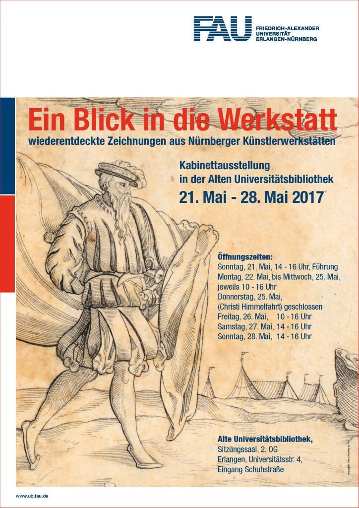 Die Graphische Sammlung der Friedrich-Alexander-Universität Erlangen-Nürnberg rühmt sich eines Bestandes, um den sie viele Museen beneiden dürften: eine Sammlung von knapp 7.000 Handzeichnungen, Kupferstichen bzw. Radierungen und Holzschnitten des 14. bis 18. Jahrhunderts aus dem Besitz der Markgrafen von Brandenburg-Ansbach. Im Kern handelt es sich um Arbeitsmaterial der Nürnberger Künstlerwerkstätten, das seit dem Spätmittelalter aufbewahrt wurde − Musterblätter, Skizzen, Kompositionsentwürfe, Sicherheitskopien oder auch selbständige Arbeiten in Farbe – und recht bald das Interesse kunstsinniger Kaufleute weckte.